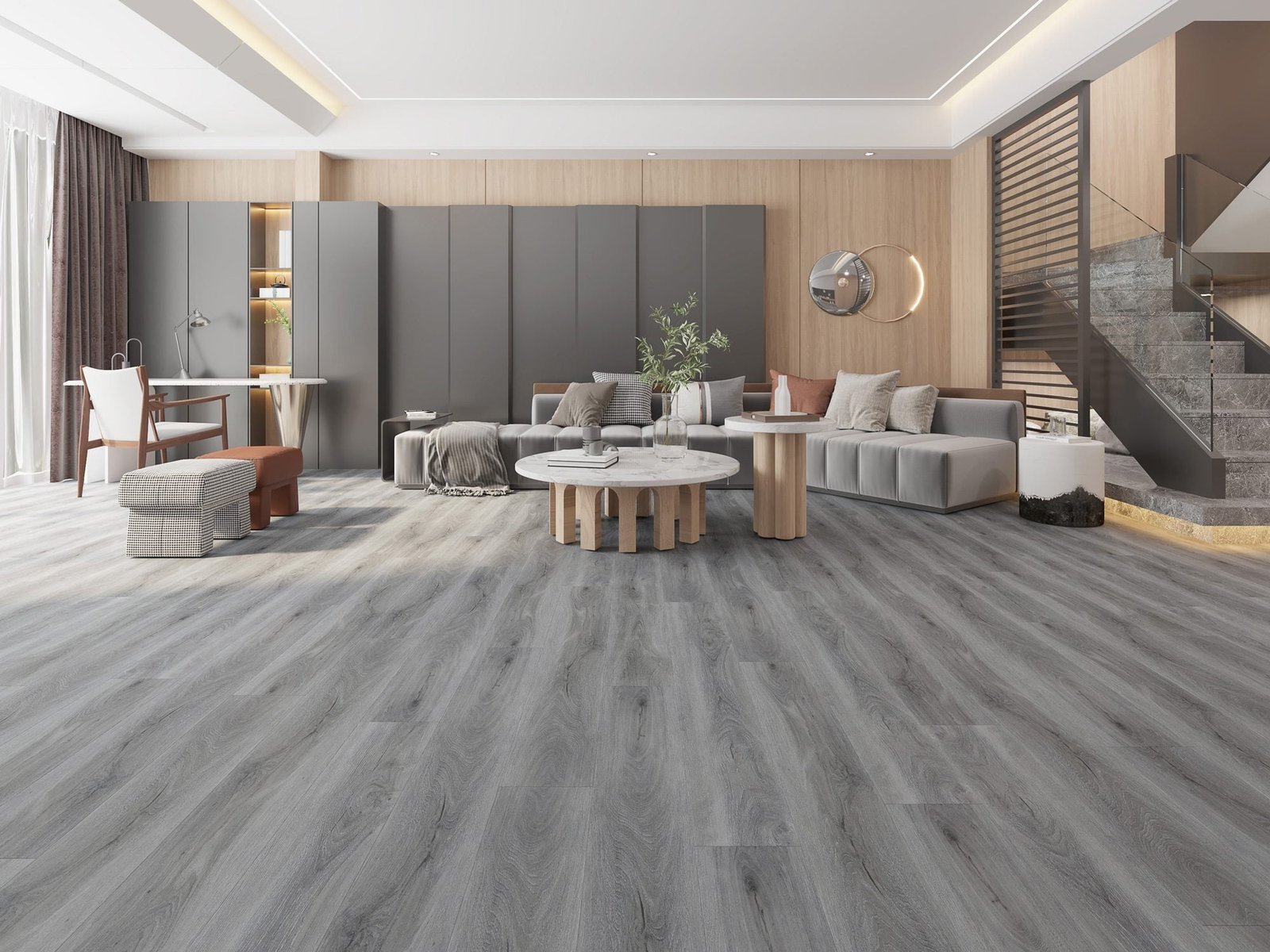Engineered hardwood, laminate, and vinyl planks are ideal for modern homes that want elegance without overspending. These options are moisture-resistant, easy to install, and more affordable than solid hardwood.